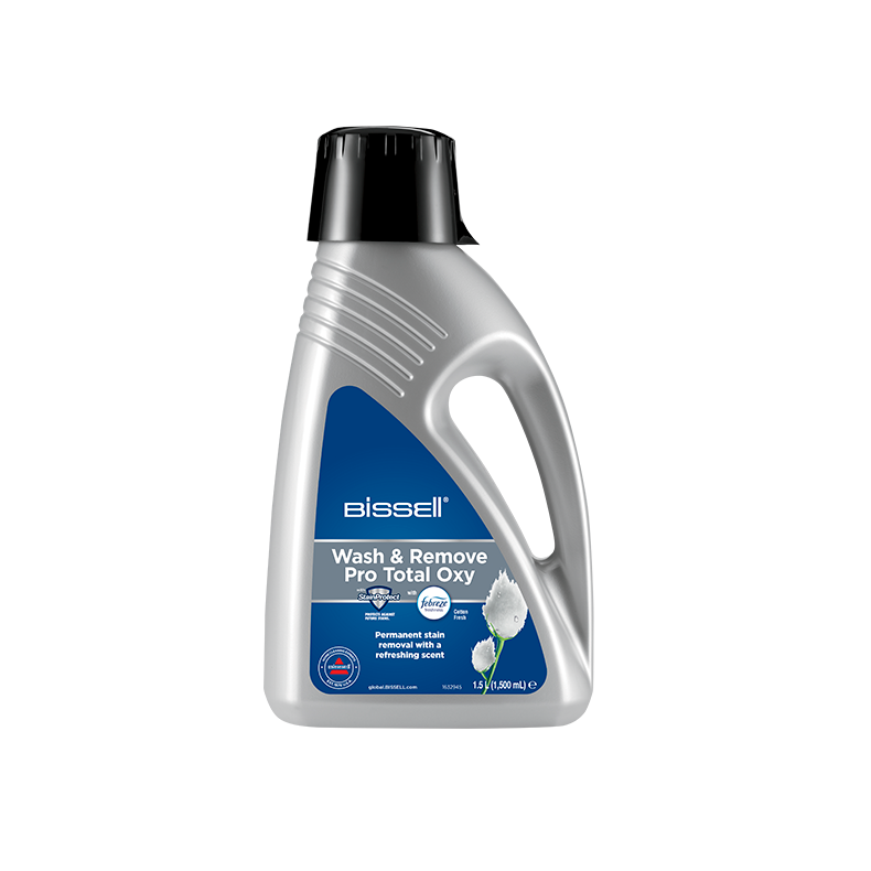 O novo champô para alcatifas Wash and Remove Pro Total especialmente concebido remove sem esforço manchas e odores com o poder do Oxy. Este é o nosso primeiro champô para alcatifas que inclui o aroma fresco de Febreze e Oxy, permitindo que o limpador de alcatifas BISSELL remova permanentemente manchas difíceis e proteja as fibras das alcatifas, deixando-as a cheirar a algodão fresco.
